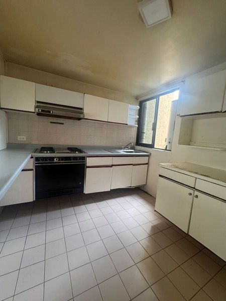 El departamento está en el 3er. piso, no cuenta con elevador, mide 97 m2, con 3 recamaras, 2 baños completos, sala, comedor, cocina, área de tendido y cuarto de servicio. Tiene 2 estacionamientos techados, entran en fila, no se estorban con otros.